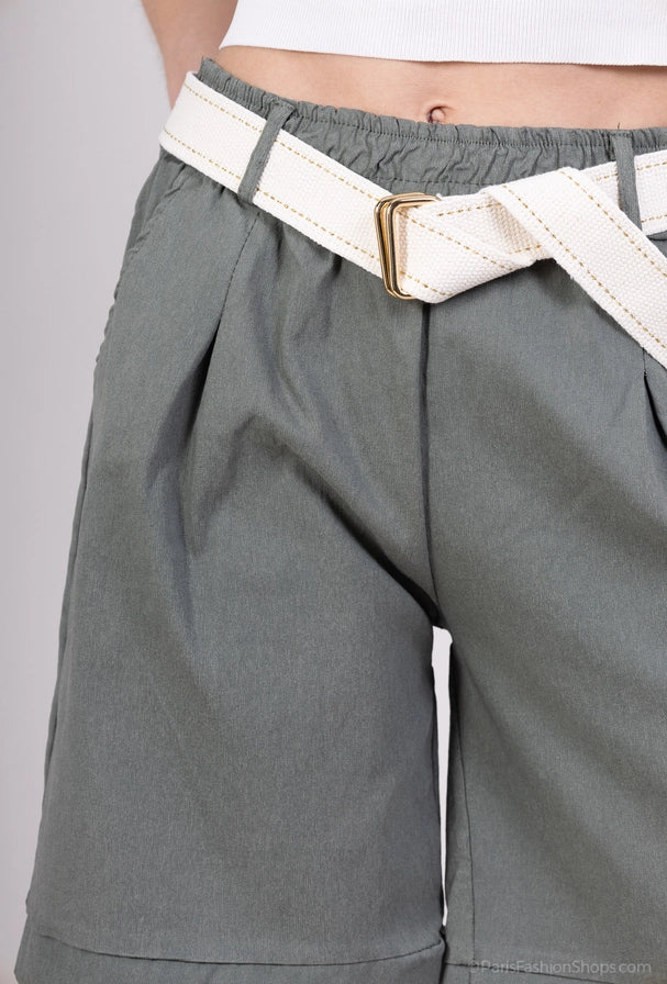 Bermuda byxor med elastisk midja - Khaki