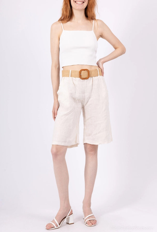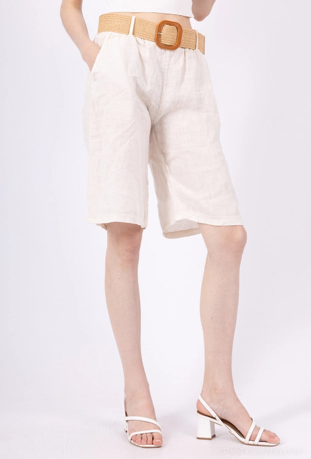Bermudashorts - 100% linne - Creme