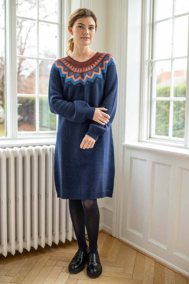 Danesukkertop är en fantastisk stickad klänning som genast blir en favorit i din garderob! Klänningen har ett vackert nordiskt mönster och faller fint längs kroppen.