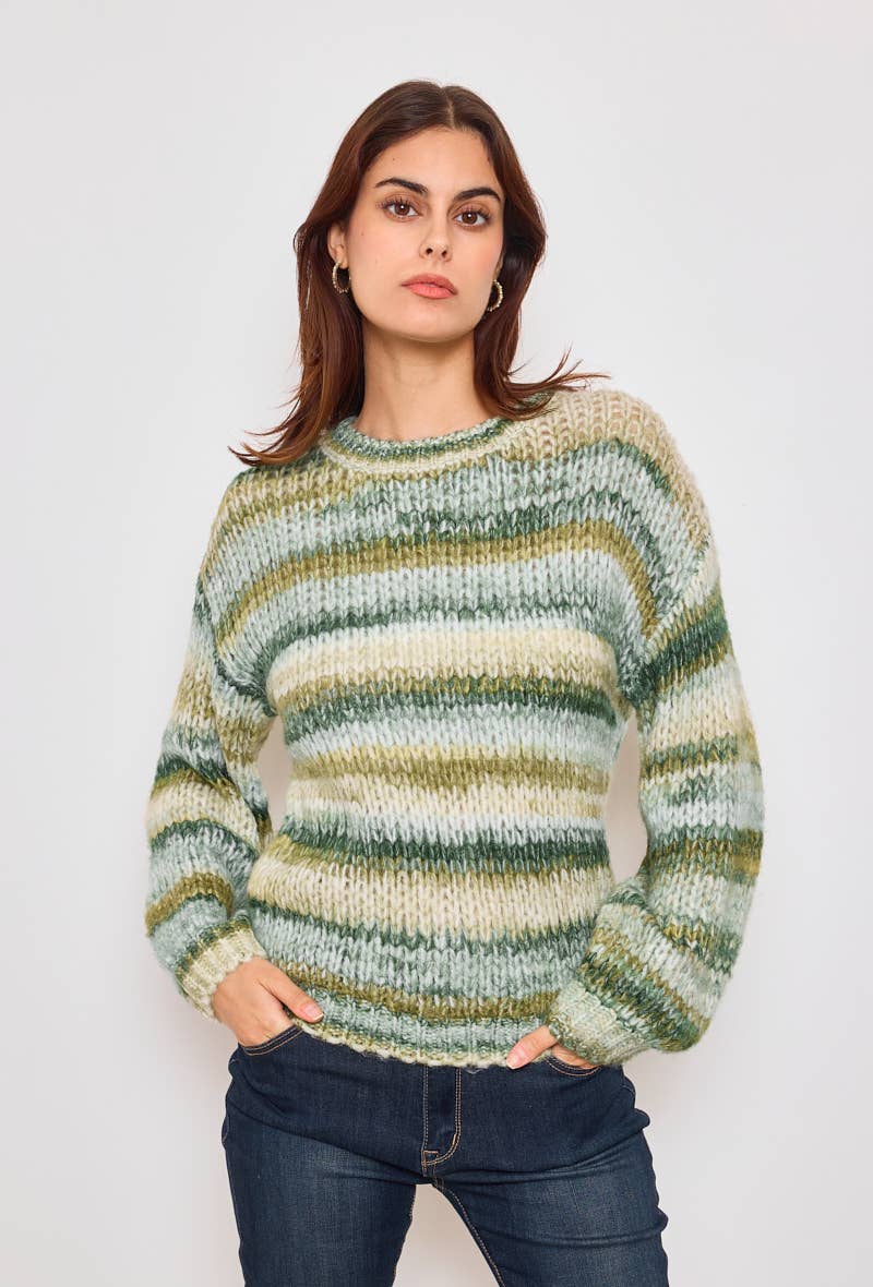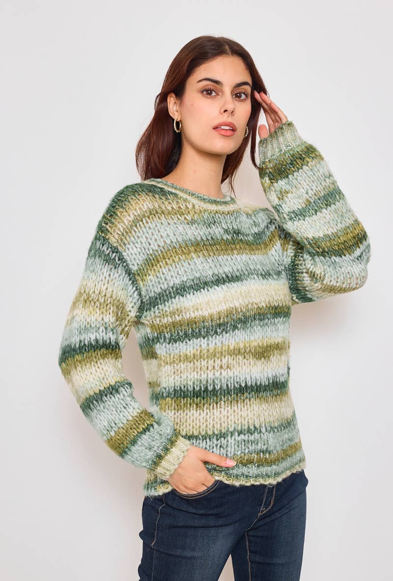 Färgad stickad tröja i grönt – mjuk, stilren och lätt att kombinera.