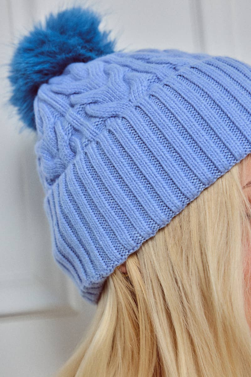 Flätad mössa med tofs: Blå - 30% Ull