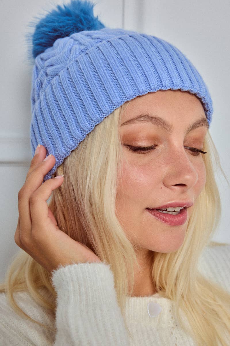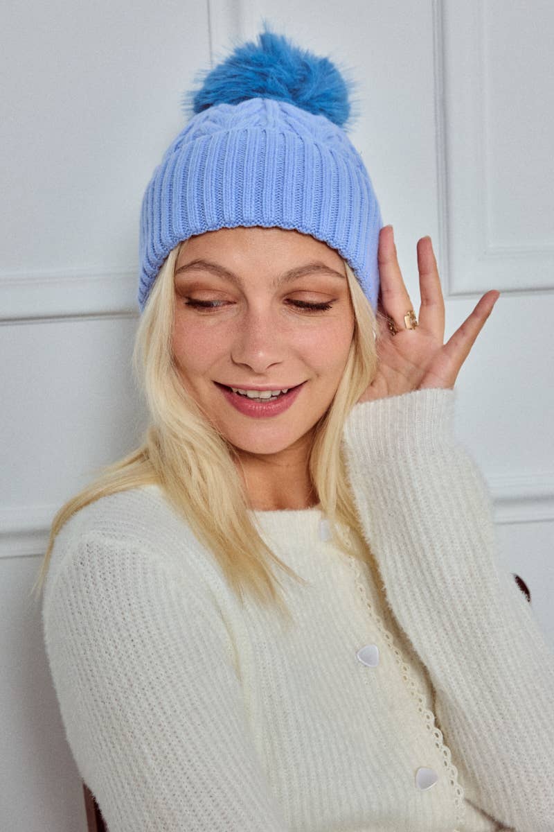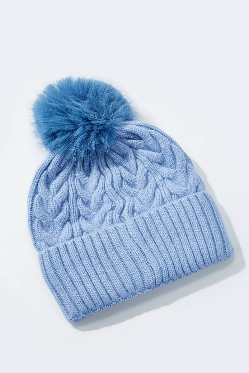 En elegant och varm mössa med flätstickad design och en charmig blå tofs – perfekt för vintermodet och för att utöka ditt utbud av stilfulla och bekväma accessoarer. Mössan kombinerar komfort, hållbarhet och enkel skötsel, och är utformad för att tilltala kunder som uppskattar både stil och mångsidighet.