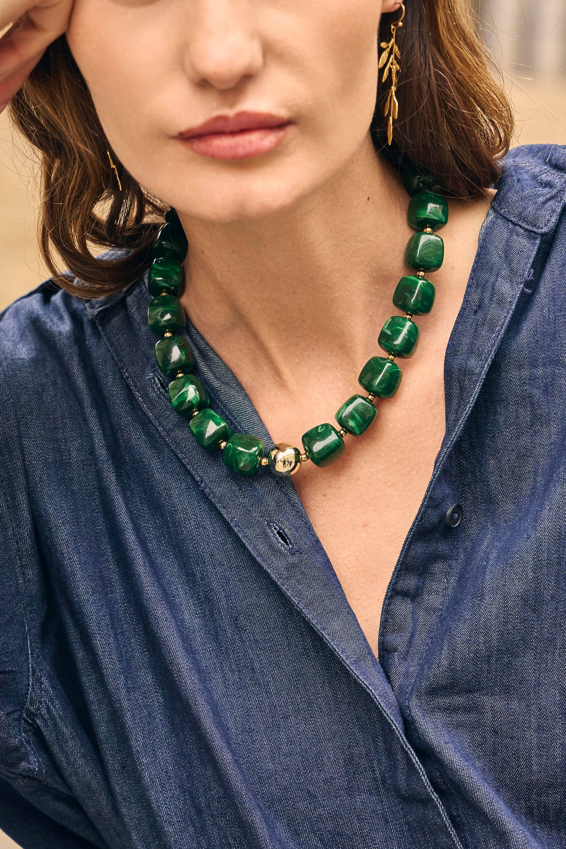 Guldfärgat halsband med marmorerad harts