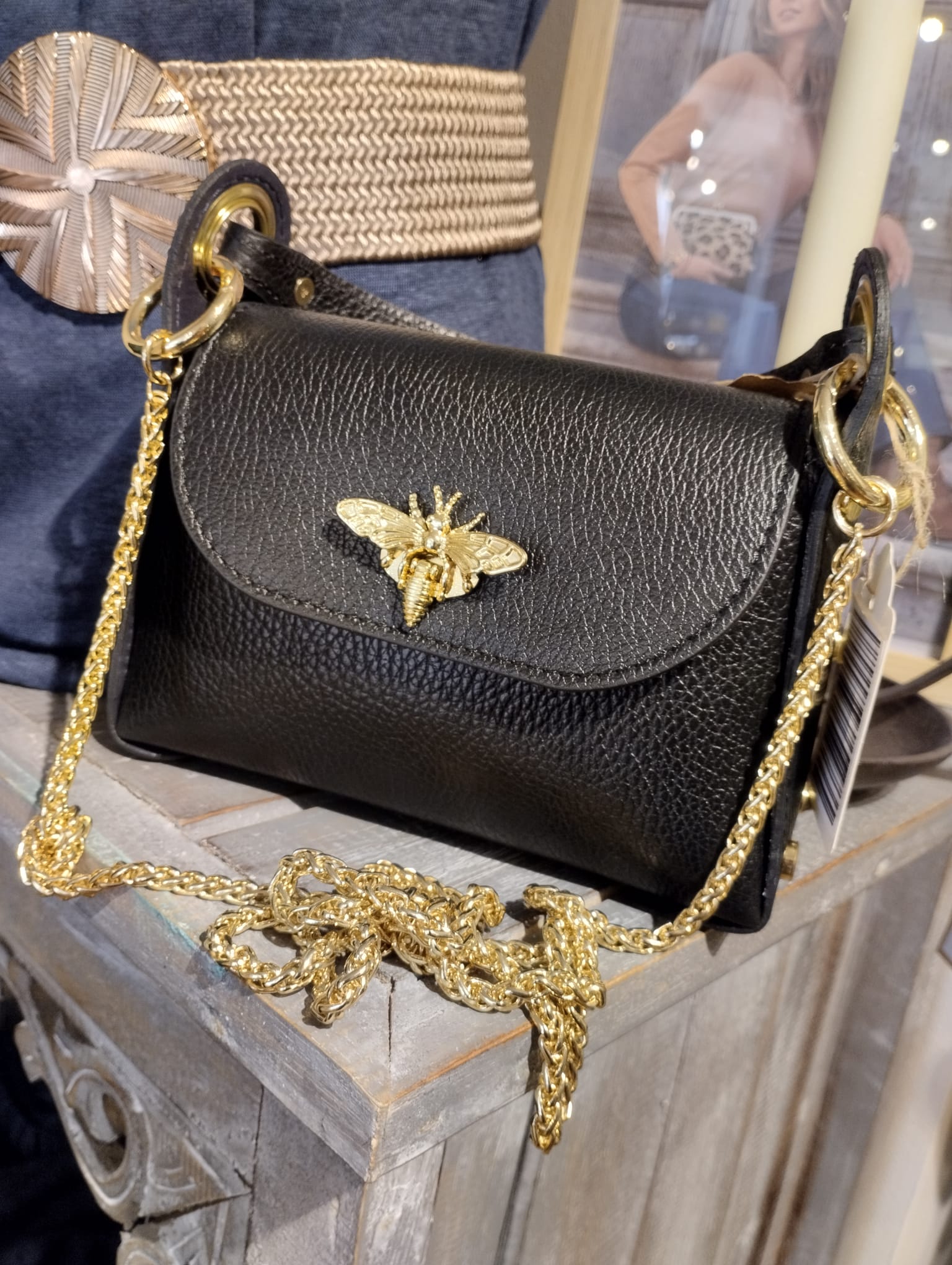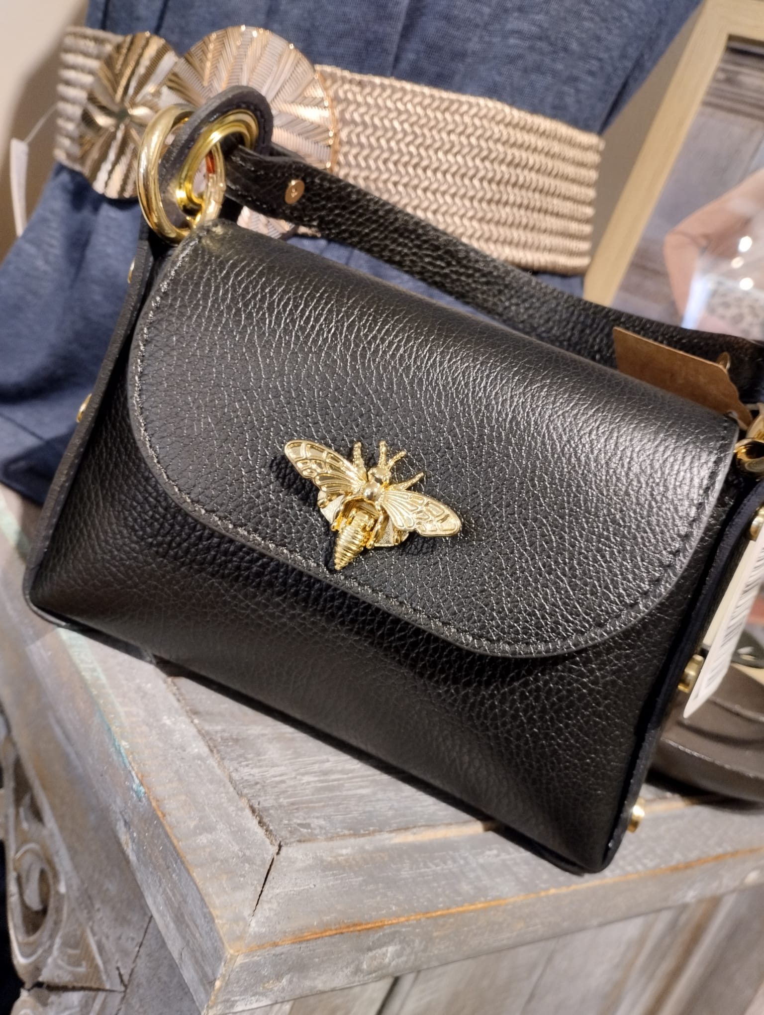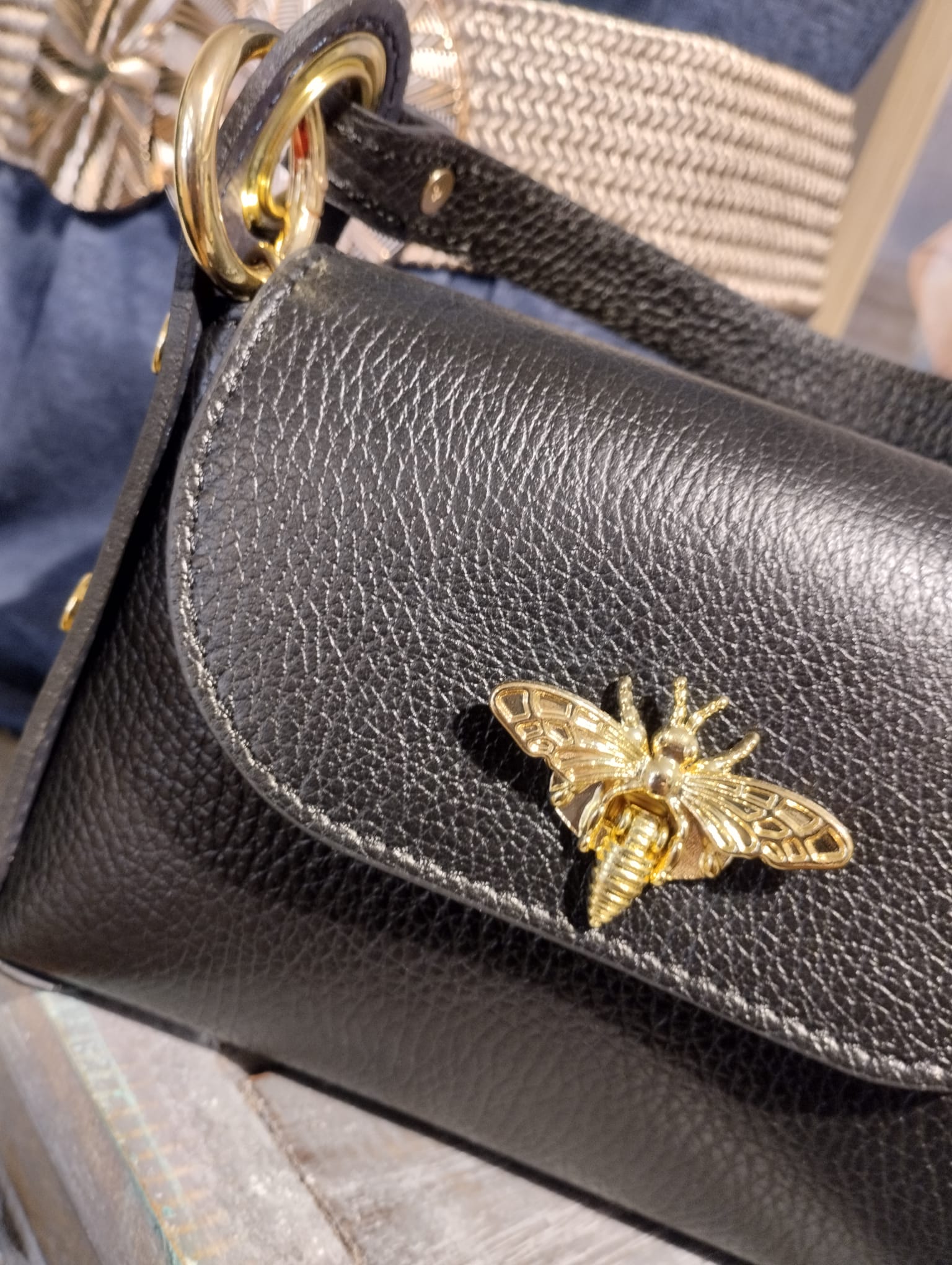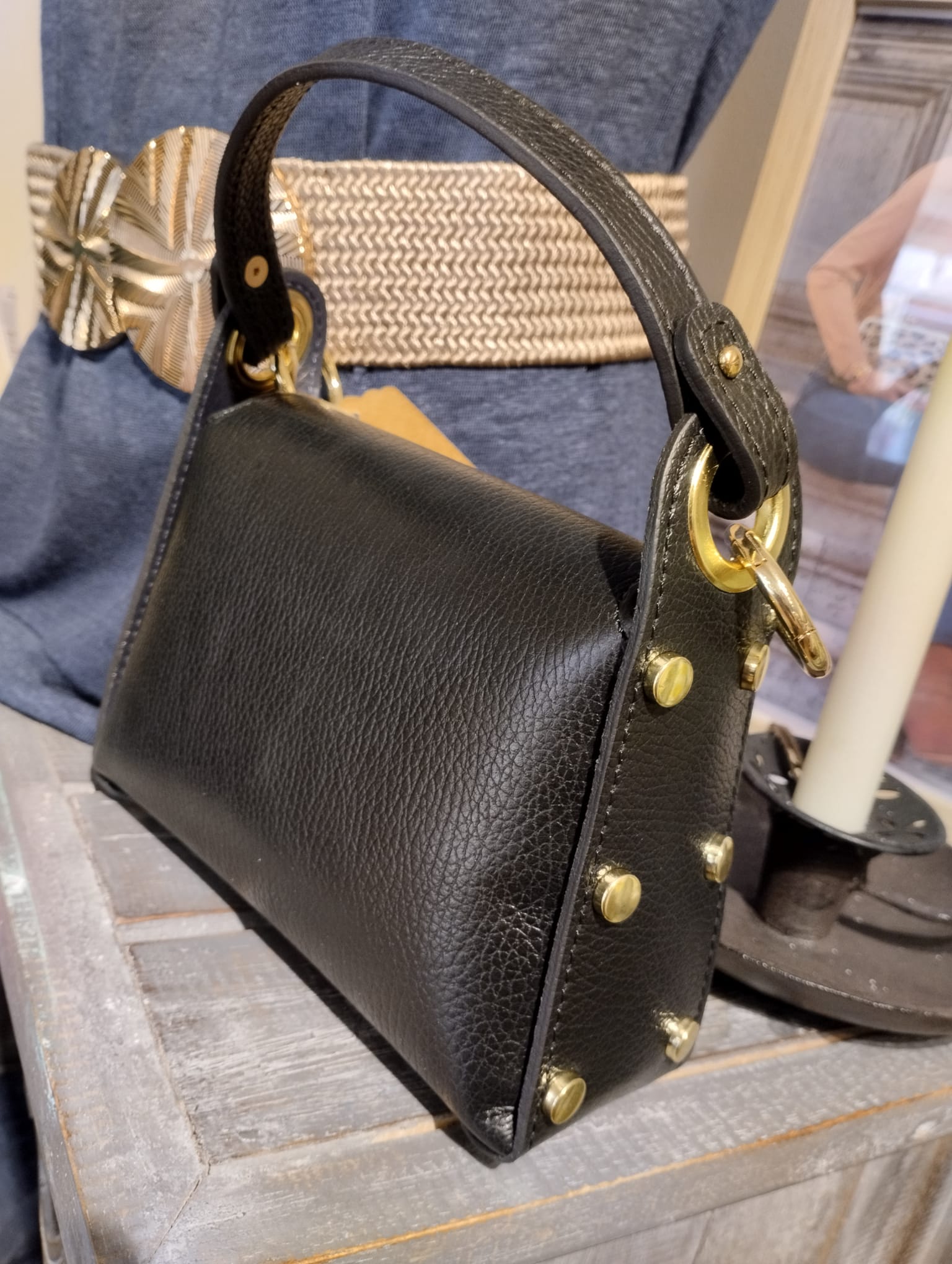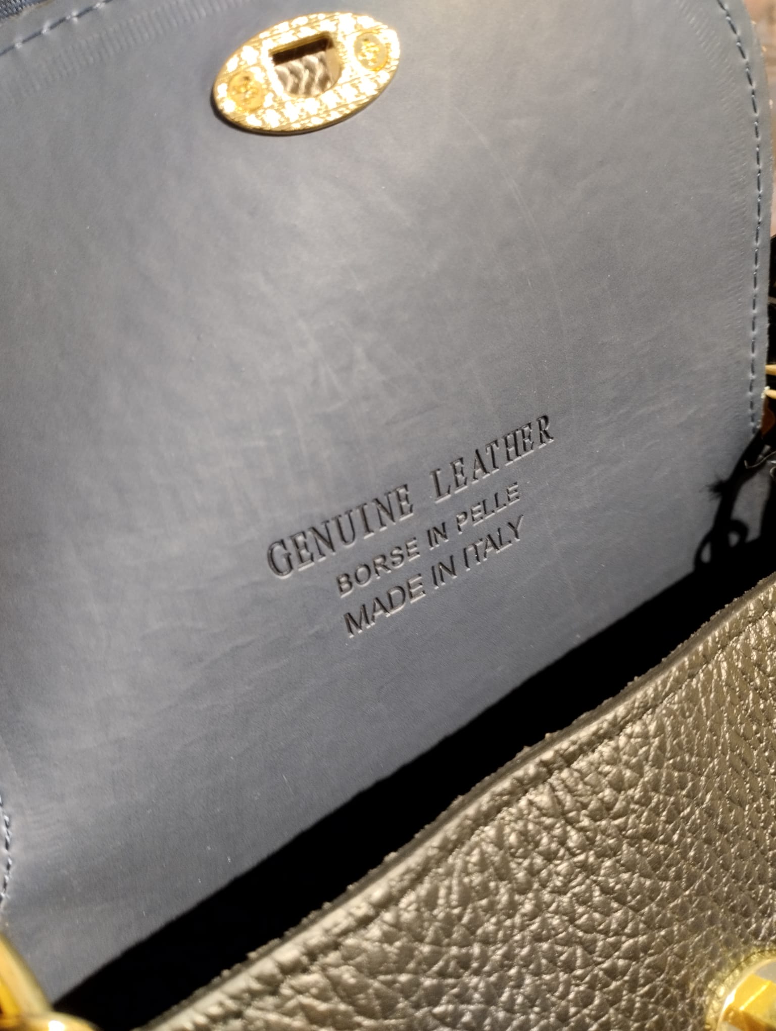 Handväska i klassiskt svart - Äkta läder - Tillverkad i Italien