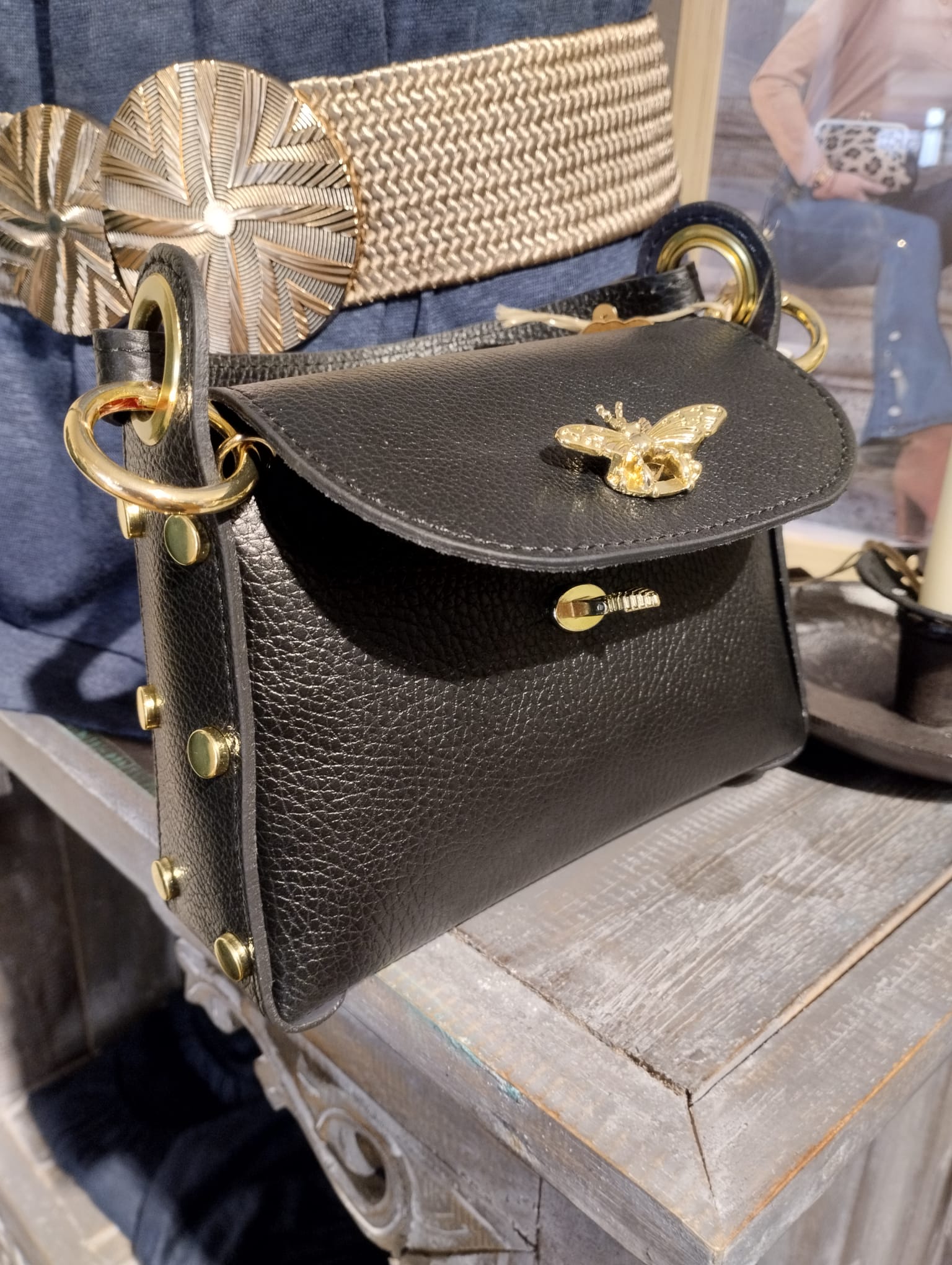 Denna stilrena handväska i klassiskt svart är det perfekta mötet mellan lyx och funktion. Tillverkad i Italien av äkta läder, utstrålar den kvalitet och hantverk i varje detalj.