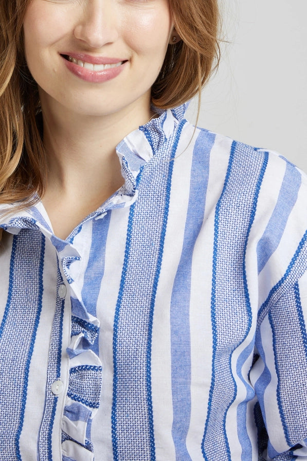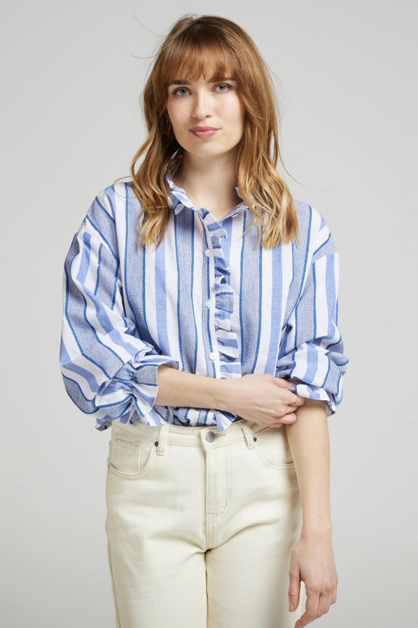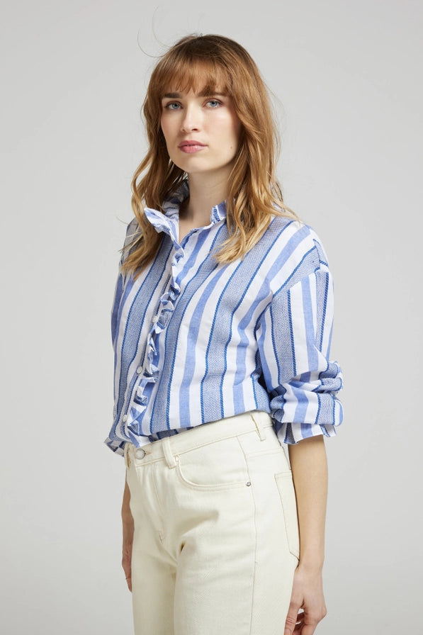KHADIJA - Broderad randig skjorta - 100 % Bomull