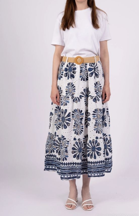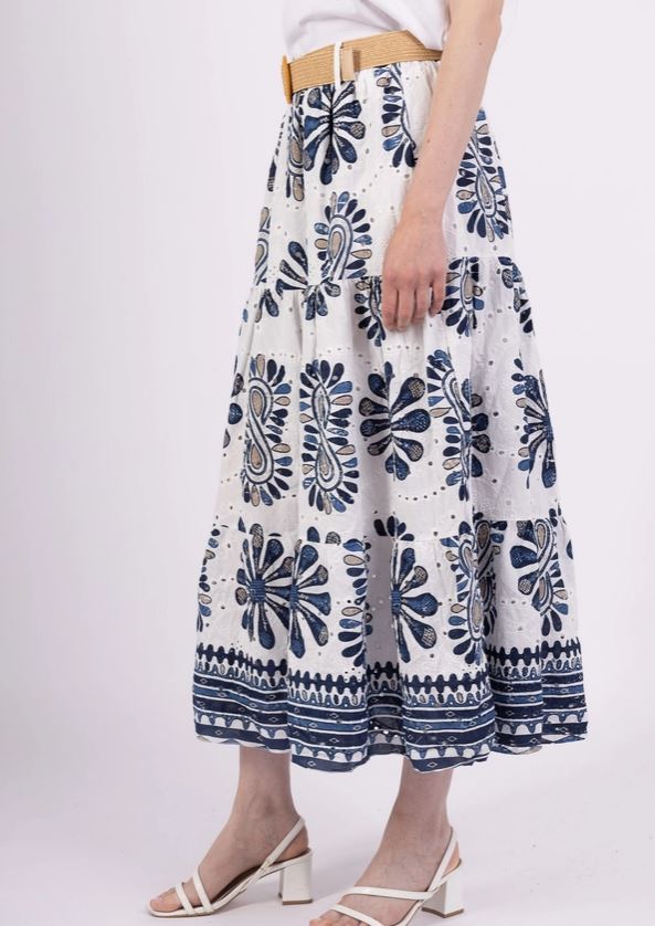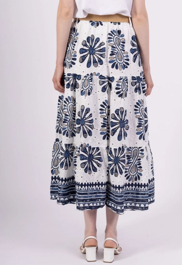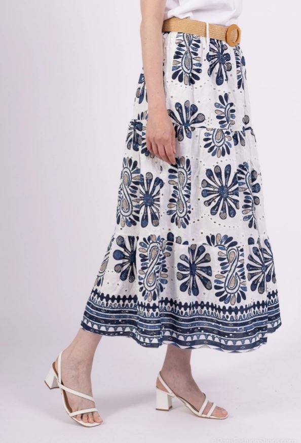 Detaljer: Etnisk blommönster med broderie anglaise-liknande utskärningar