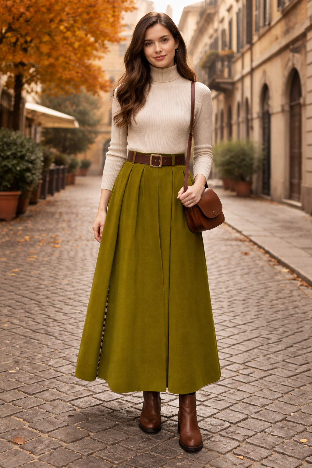 Manchesterskjol med bälte 100% Bomull Made in Italy: Khaki