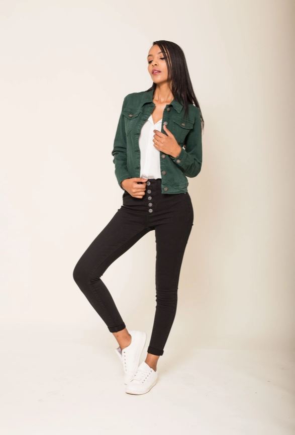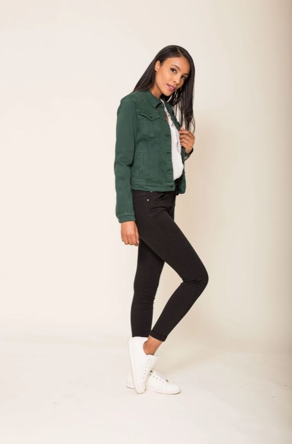 Smal färgad jacka, i stretchmaterial för maximal komfort.
