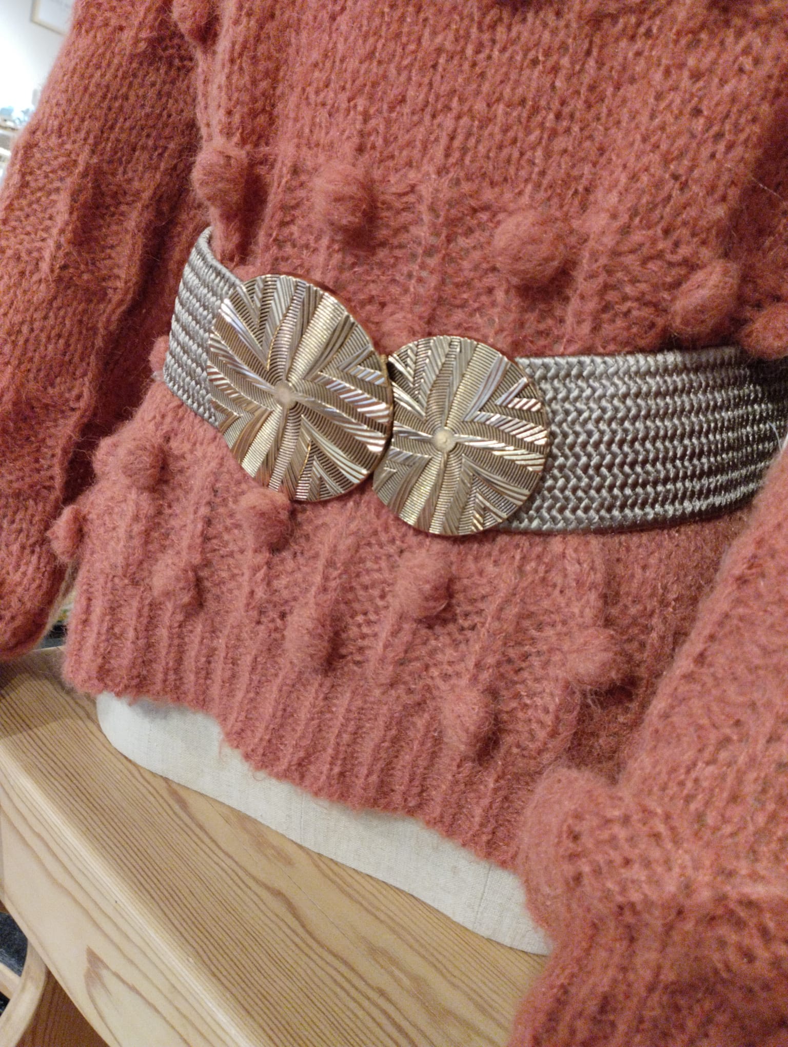 Tillverkat i 90% polyester och 10% metall, är bältet både lätt och hållbart. Passar lika bra till klänningar som till tunikor eller blusar – ett mångsidigt val för både vardag och fest.