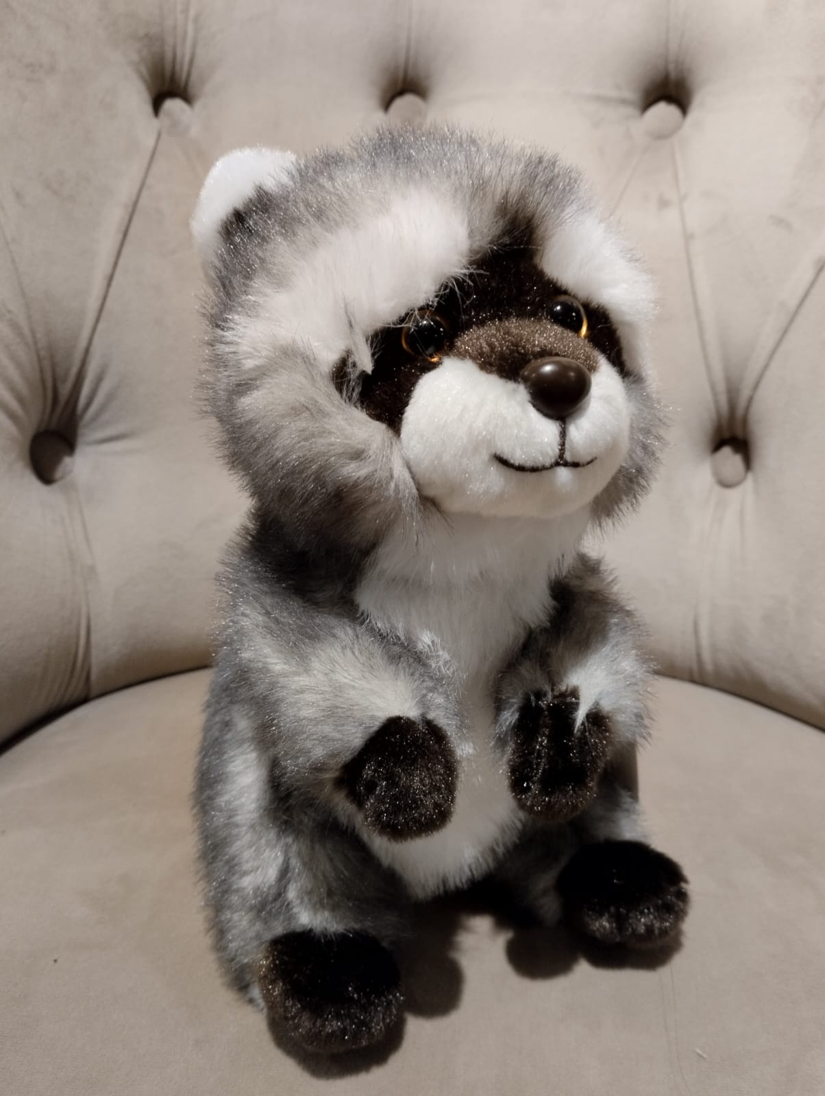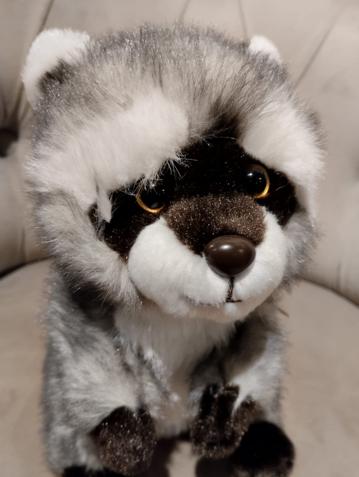 En oemotståndligt söt tvättbjörn som sprider glädje, värme och mys – perfekt som gåva eller som en ny liten kompis att älska!