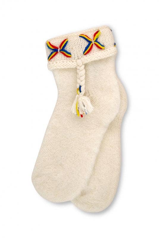 Varma och härliga Lovikka strumpor i borstad Shetlandsull med nordiskt mönster och tofs, för kalla dagar utomhus eller inomhus.
