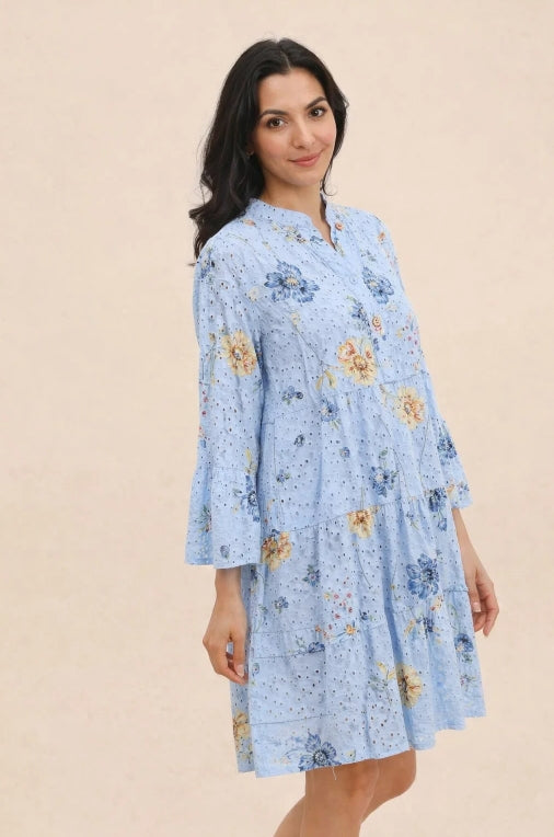 De vackra blommönstren ger en feminin och tidlös charm, medan den högkvalitativa bomullen säkerställer både komfort och hållbarhet. Oavsett om det är en solig sommardag, en utekväll eller en avslappnad helg, blir denna klänning ditt självklara val för stil och elegans.