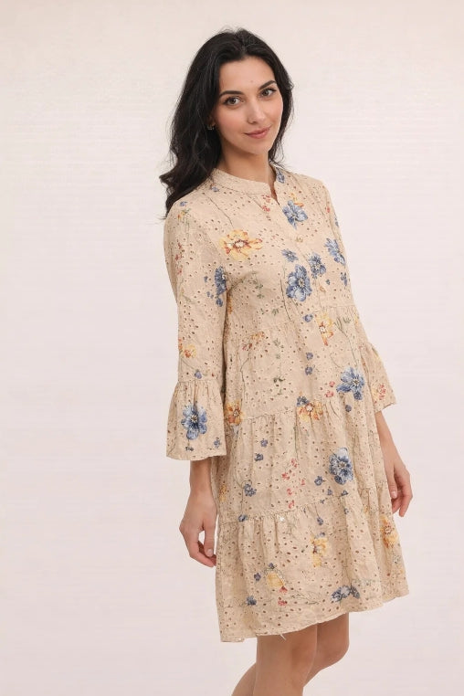 De vackra blommönstren ger en feminin och tidlös charm, medan den högkvalitativa bomullen säkerställer både komfort och hållbarhet. Oavsett om det är en solig sommardag, en utekväll eller en avslappnad helg, blir denna klänning ditt självklara val för stil och elegans.
