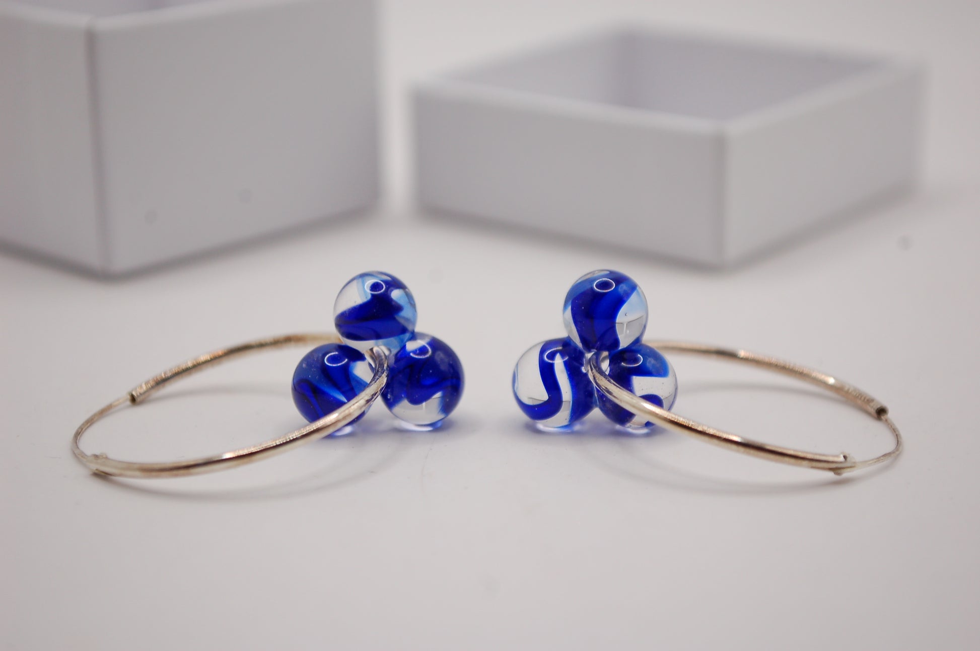 Örhängen - creoler i rund design med blå detaljer. Eleganta och tidlösa, perfekta för både vardag och fest.