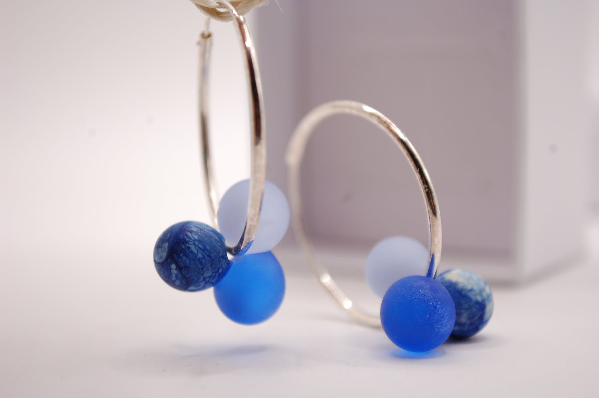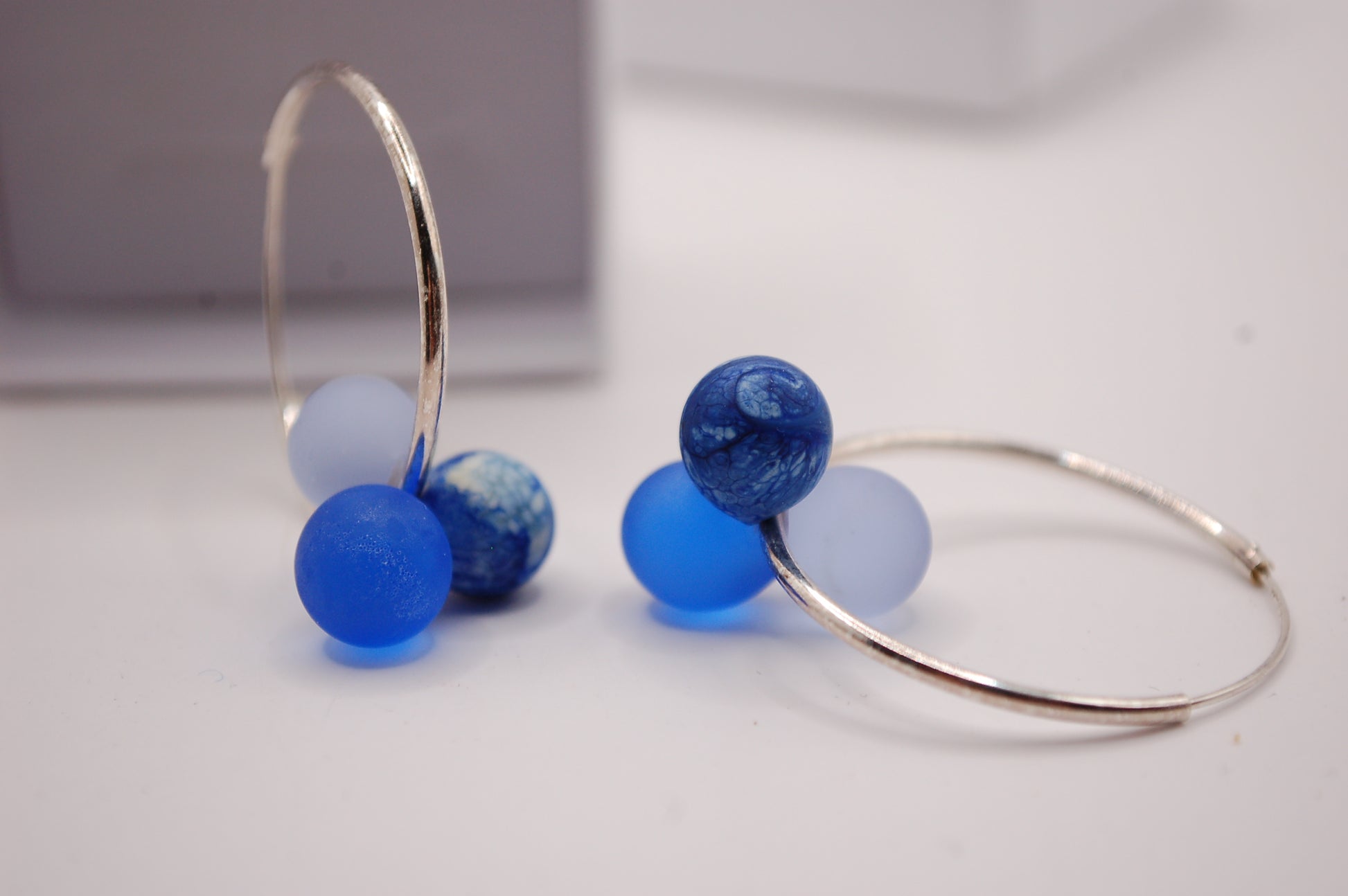 Örhängen - Creoler / Runda Ringer - Blå - Silver - Marianne Degener