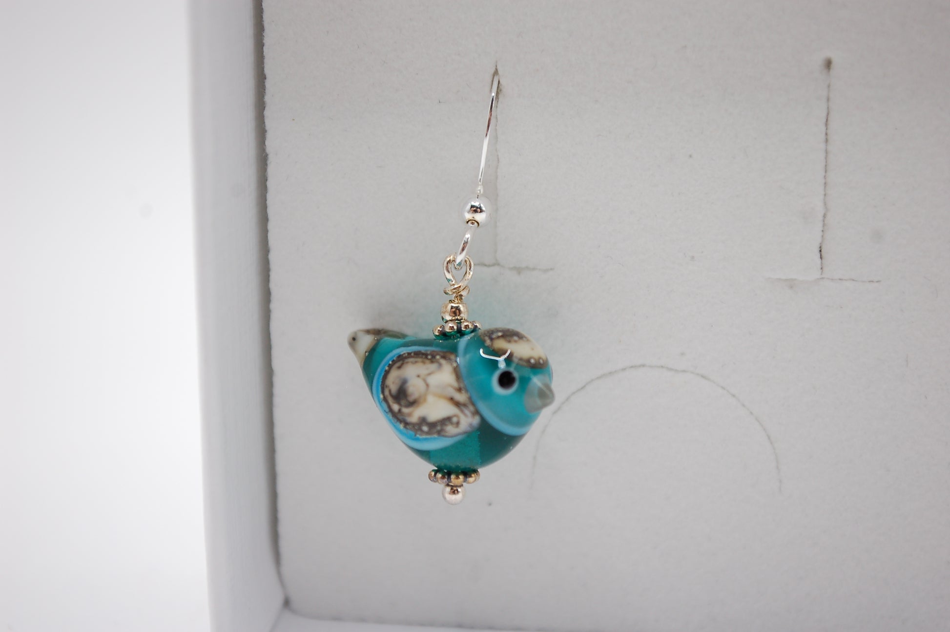 Örhängen Fågel i Glas - Turkos Fantasifågel - Marianne Degener