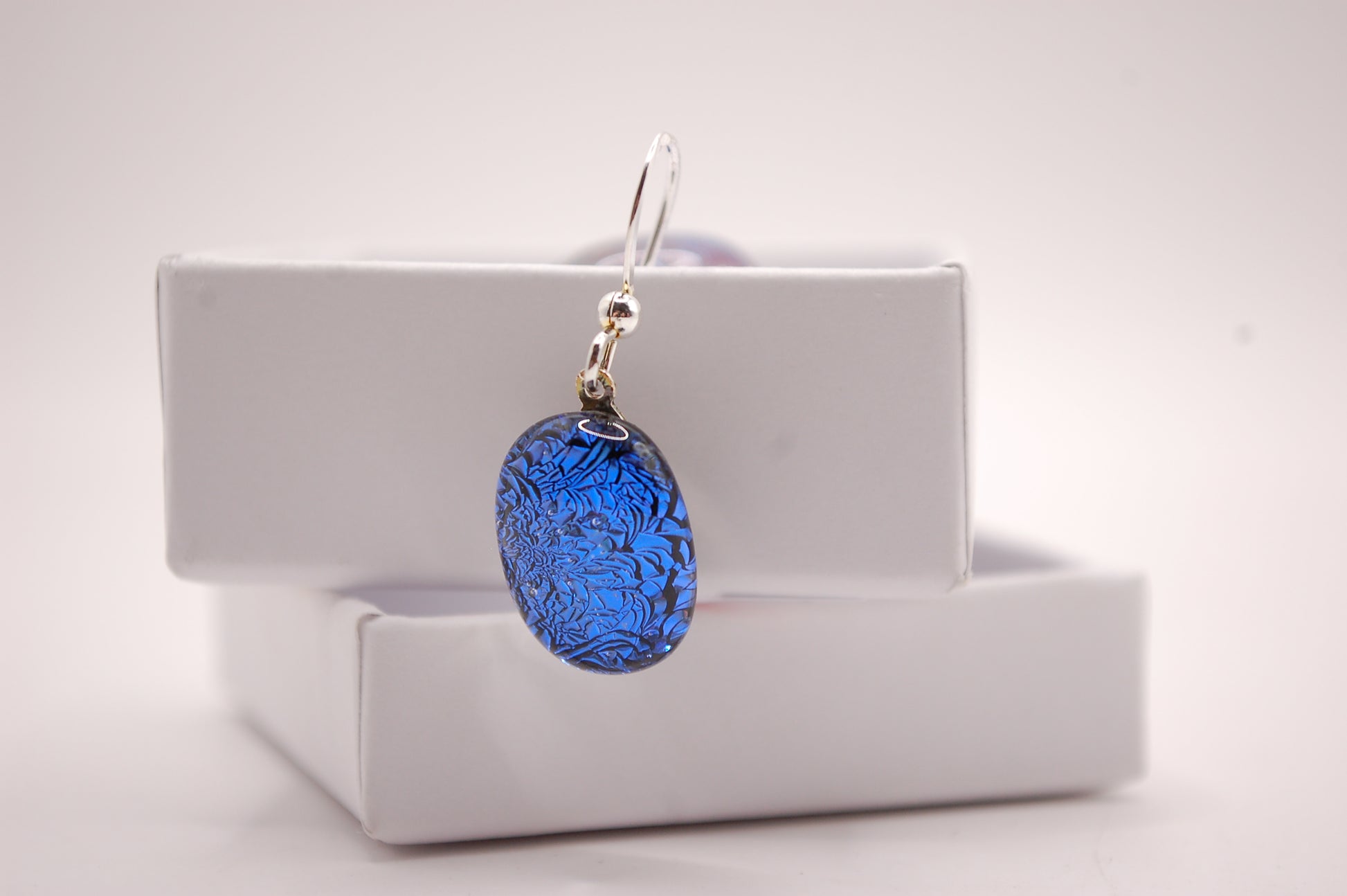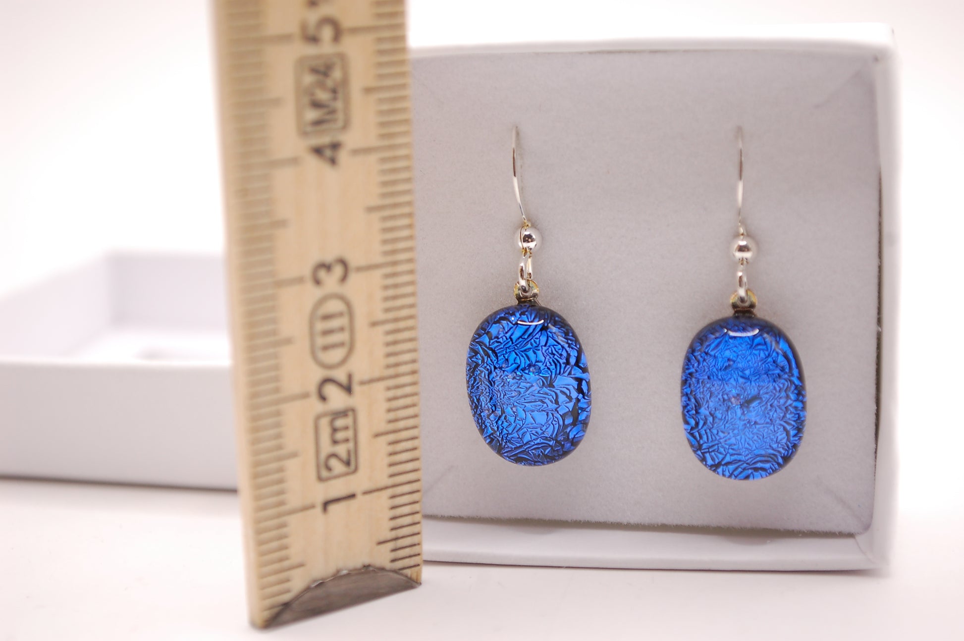 Par Örhängen - Dichroic Glas - Blå - Silver - Marianne Degener
