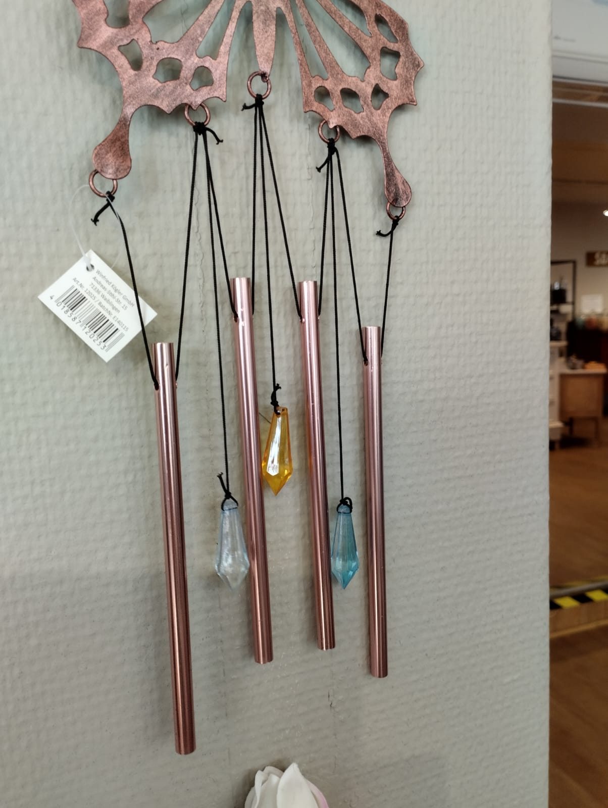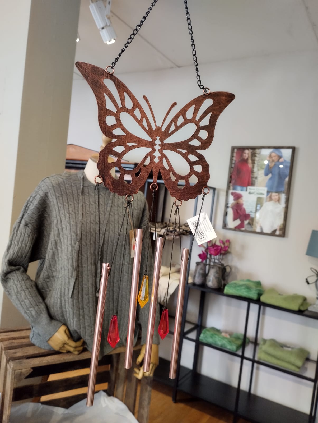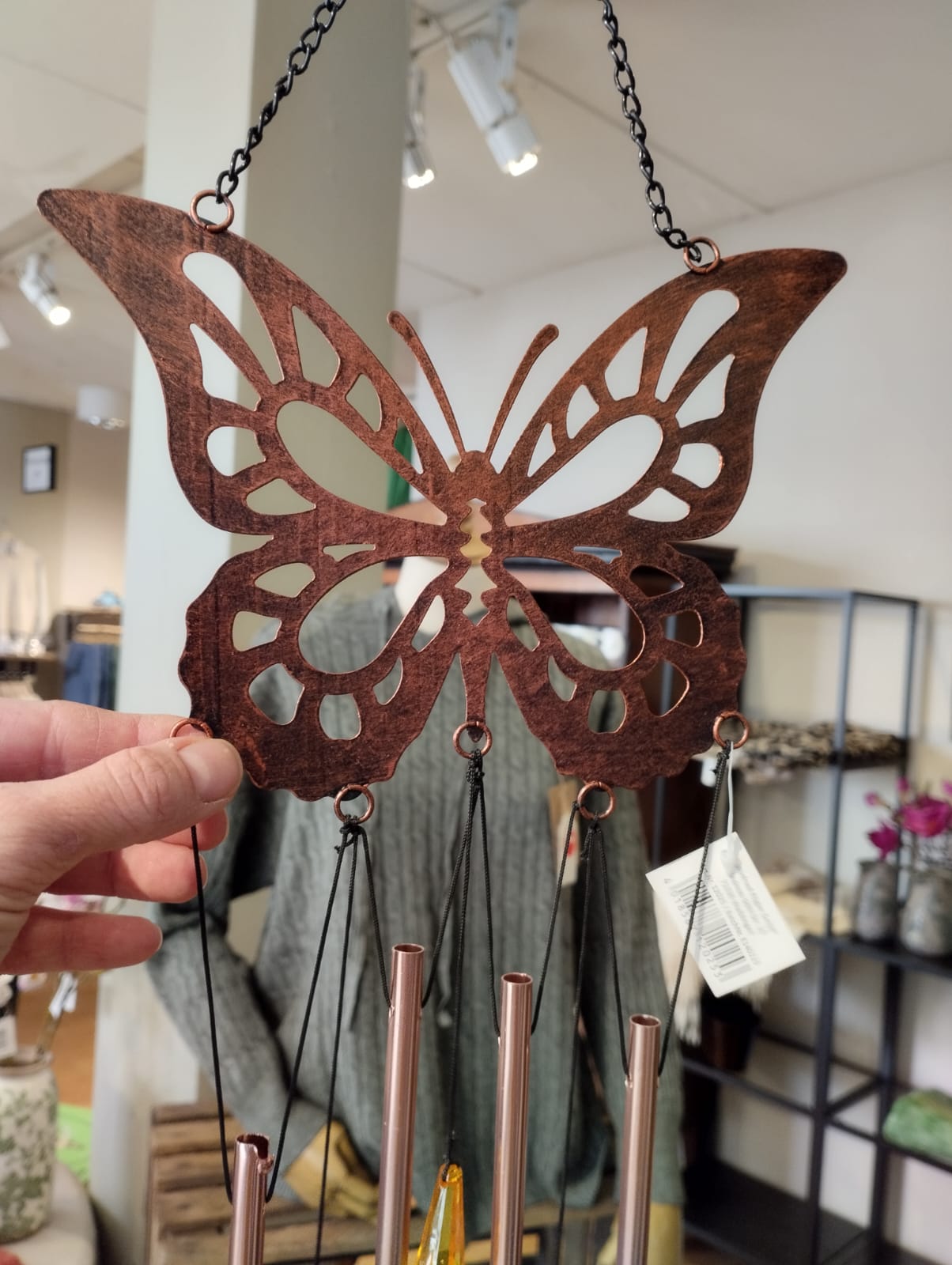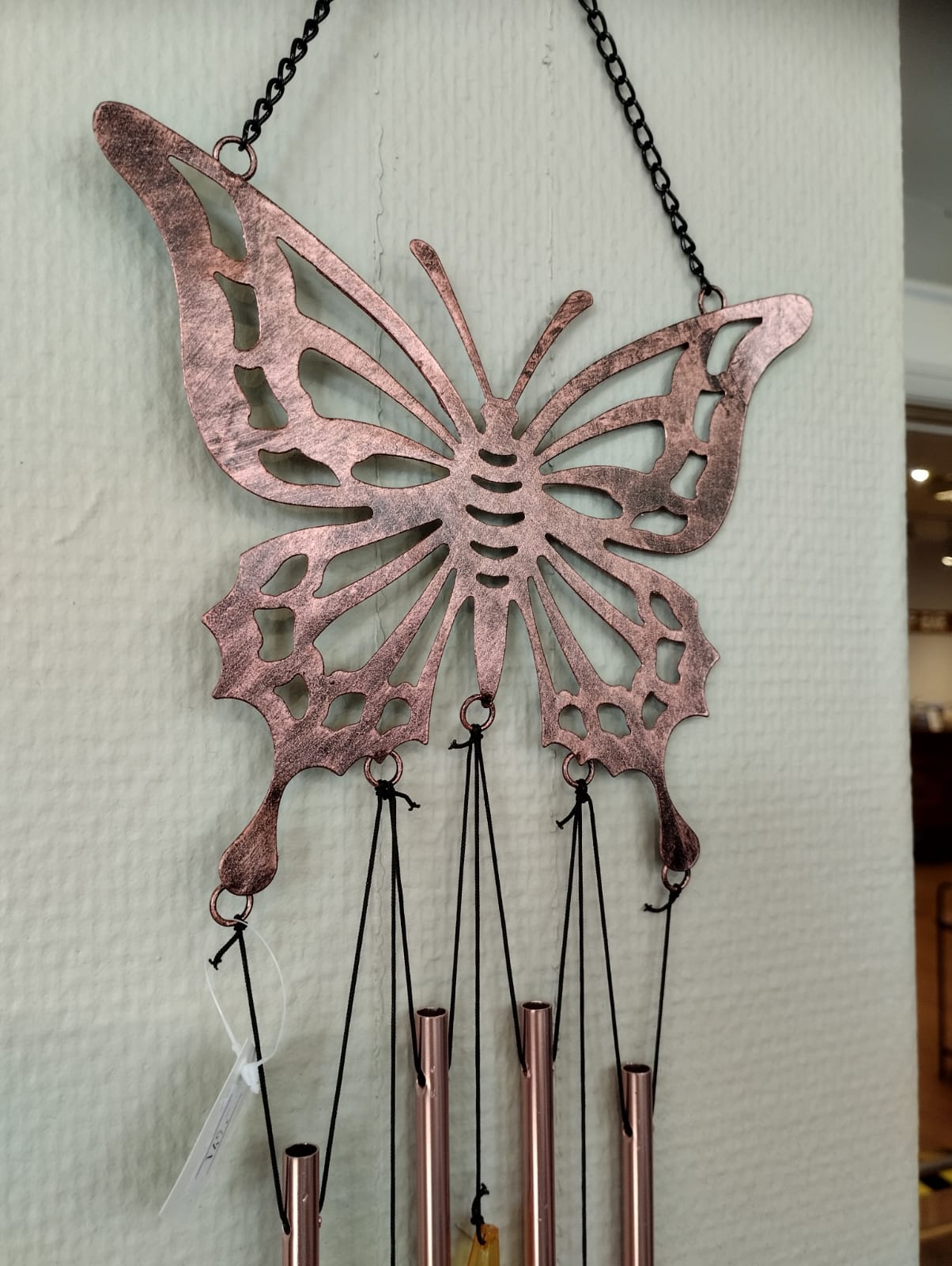 Ge din trädgård eller uteplats en magisk touch med vårt vackra Vindspel Fjäril. Detta dekorativa vindspel är tillverkat av högkvalitativt metall och har fyra klangkroppar som skapar en harmonisk och avslappnande melodi när vinden blåser.